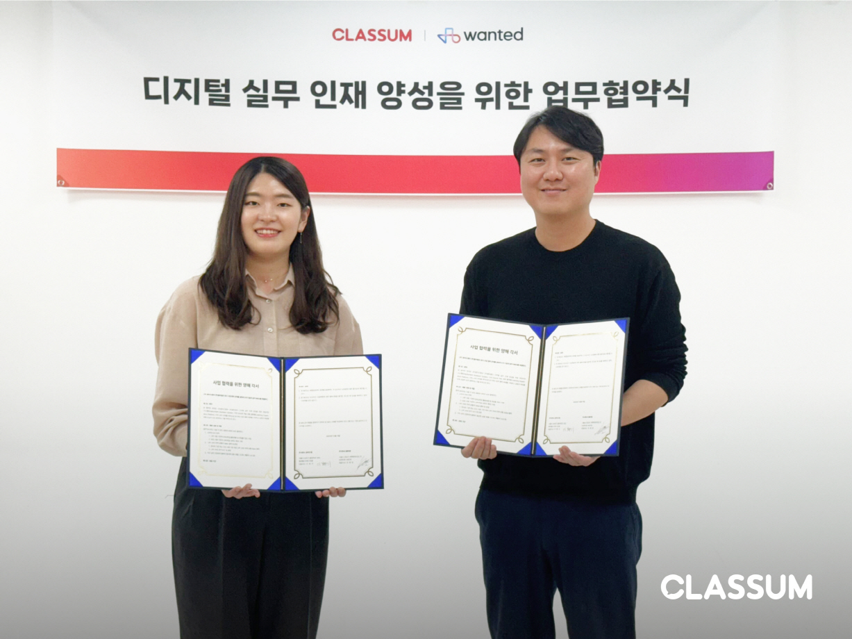 교육 및 지식 공유 플랫폼 클라썸이 HR테크 기업 원티드랩과 디지털 실무 인재 양성을 위한 업무협약(MOU)을 체결했다.
