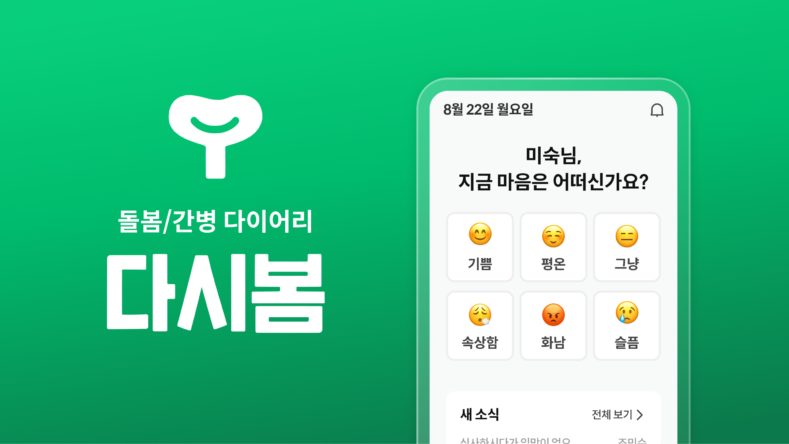 시니어 테크 스타트업 스프링어게인은 주이나 대표가 치매 가족을 돌보던 어머니의 건강이 악화됐던 경험에서 ‘다시봄’을 착안했다. 다시봄은 지난해 11월 CBT(베타 테스트)를 거쳐 올해 4월 안드로이드 앱을 정식 출시했고 최근 장기요양기관 종사자의 업무 및 소통 효율을 제고시켜 주는 비서 서비스를 선보이며 B2B로 사업 영역을 확장했다.