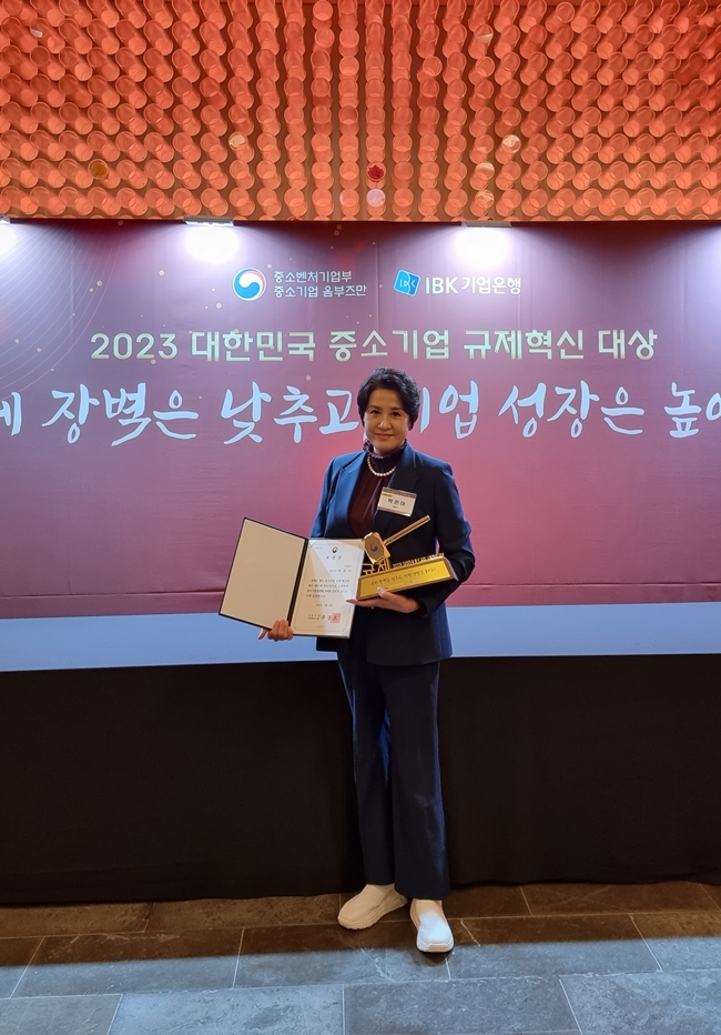이번 표창은 박은아 대표가 기업 현장의 규제애로사항을 발굴·개선하고 중소기업 활력 증진에 기여한 공로를 인정받아 수상했다.