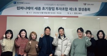 대전·세종지역 기반 글로벌 액셀러레이터인 (유)컴퍼니에이(대표 조병현)는 지난 19일 오후 ‘컴퍼니에이 세종 초기창업 투자조합 제1호’ 결성 총회를 개최했다. ‘컴퍼니에이 세종 초기창업 투자조합 제1호’는 중소벤처기업부와 한국벤처투자가 비수도권 소재 초기 창업기업에 대한 투자를 위해 조성한 모태펀드로, 컴퍼니에이가 결성한 개인투자 조합이며, 금번 결성총회에는 한국벤처투자 혁신투자본부 담당자와 컴퍼니에이 대표 및 주요 심사역이 참석했다. 결성된 조합은 8년의 운영기간(투자기간 4년) 동안 지역소재 기업에 대한 투자활성화에 기반한 지역경제활력 제고를 위해 집행될 예정이며, 특히 세종지역의 초기 창업기업에 집중적으로 투자 될 예정이다. 컴퍼니에이(대표 조병현)는 “ 청년창업사관학교(세종)의 민간 운영사로 활동한 경험 등 다년간의 지역소재 기업 육성 경험을 바탕으로 향후에도 적극적인 투자활동과 기업육성활동을 통해 세종지역기반 기업의 혁신과 성장을 위해 최선의 지원을 다할 것”이라며, “금번에 결성된 조합이 그간 투자유치로부터 소외 되었던 로컬크리에이터, 유망 소상공인들에게 작지만 큰 희망이 되길 바란다”고 밝혔다. 관련 기사 더 보기 https://www.venturesquare.net/857913