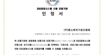 중소벤처기업인증원(KOSRE)이 한국인정지원센터(KAB)로부터 ‘ESG 경영시스템 시범 인증기관’으로 지정받았다. 한국인정지원센터는 산업통상자원부 산하 법인으로 품질, 환경 등 각종 경영시스템 인증과 자격인증 분야의 우리나라 공식 인정기관이다. 최근 ESG 경영 실천의 중요성은 물론 신뢰 가능한 ‘ESG 공시 인증’ 도입이 필요하다는 목소리가 나오고 있는 분위기 속에서 한국인정지원센터는 ESG 경영에 대한 입증이 필요한 기업에게 친숙하고 구현이 용이한 인증 제도를 제공함으로써 기업을 지원하고자 ‘ESG 경영시스템 시범 인정·인증제도’ 사업을 마련했다. 중소벤처기업인증원은 이 사업 수행을 위해 준비한 결과 시범 인증기관으로 최종 인정을 받게 됐다. 인정 유효기간은 2023년 12월 20일부터 2024년 12월 19일까지 1년이다. 엄진엽 중소벤처기업인증원 원장은 “우리 인증원은 1995년 설립 이래 공공성과 신뢰성을 토대로 고객 가치와 만족을 위해 일해 왔다”며, “이번 시범 인증기관으로 지정됨에 따라 무거운 책임감을 느낀다. ESG 경영시스템 인증의 위상 제고에 최선을 다하겠다”고 밝혔다. 관련 기사 더보기 https://www.venturesquare.net/907749