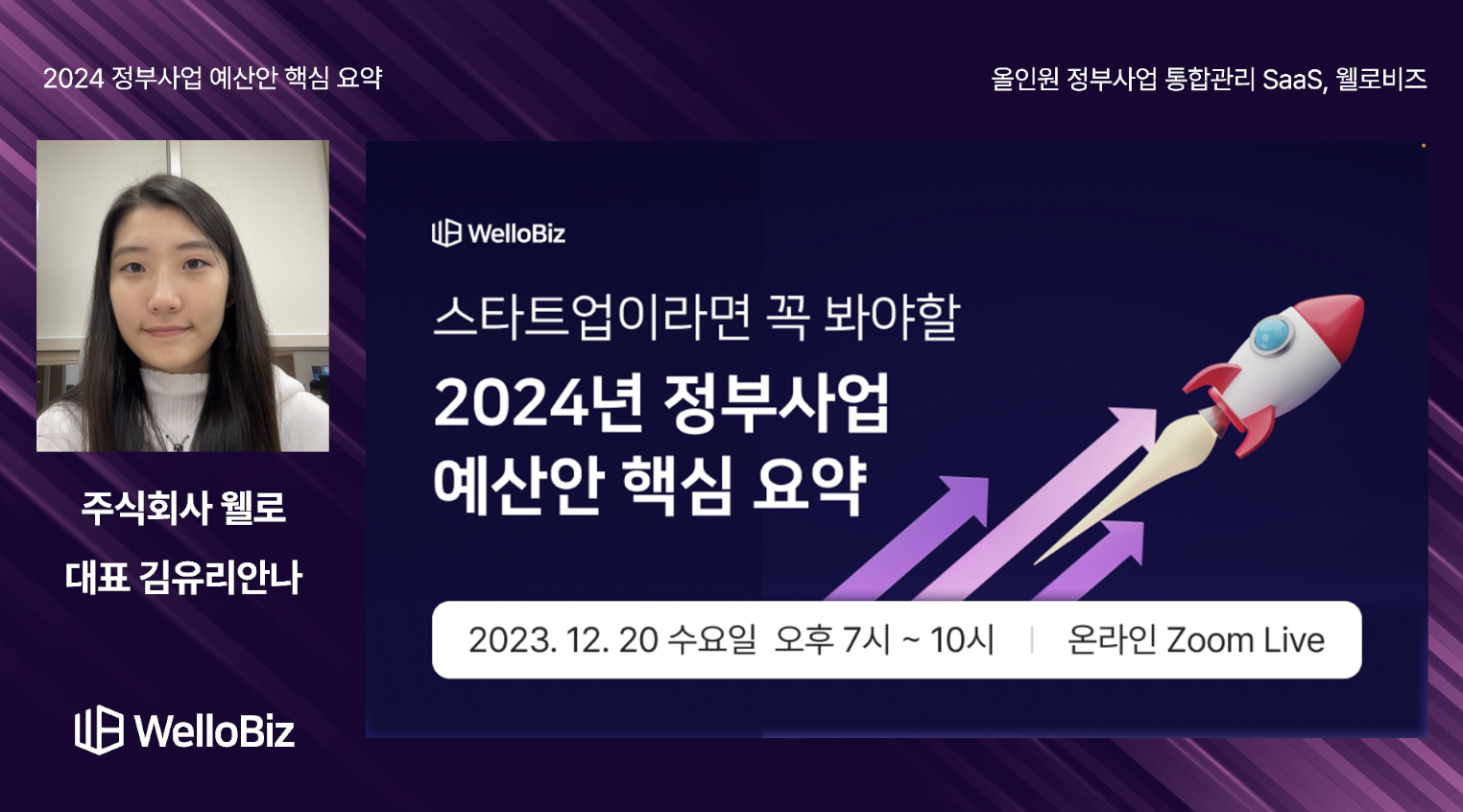 웰로비즈가 20일에 개최한 ‘2024 정부사업 예산안 핵심 요약’ 웨비나에 총 300명이 신청하며 마무리됐다.