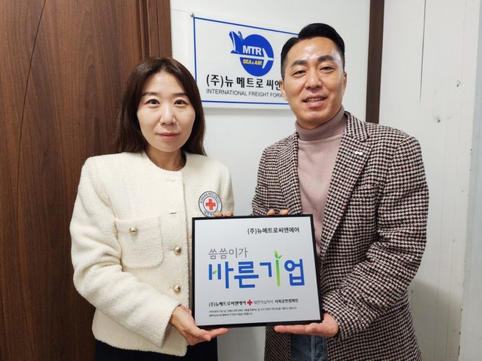 적십자사 서울지사는 서울 강서구에 위치한 화물운송 업체인 ㈜뉴메트로씨앤에어를 방문해 씀씀이가 바른기업 명패를 전달했다.