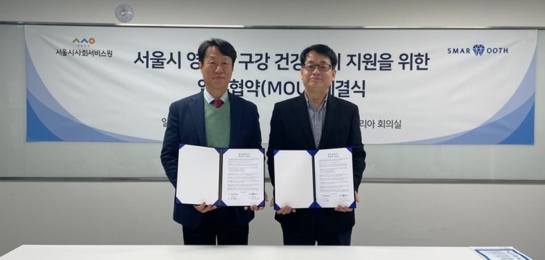 구강진단 솔루션 전문 기업 ‘㈜스마투스코리아’(대표 손호정, 이하 스마투스코리아)가 ‘서울시사회서비스원’(이하 서사원)과 서울시 영유아 구강 건강관리 서비스 실증사업 진행을 위한 업무협약을 체결했다고 28일 밝혔다.