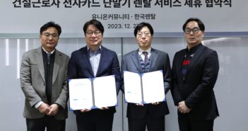 바이오인식 보안 솔루션기업 유니온커뮤니티(대표이사 신요식)는 렌탈 서비스 전문 기업인 한국렌탈(대표이사 범진규)과 2024년 건설근로자 전자카드제 확대 적용에 따라 ‘건설근로자 전자카드 단말기 렌탈 서비스’ 사업의 협력체계를 구축하기위해 업무협약을 체결했다고 지난 27일 밝혔다. 건설근로자 전자카드제란 퇴직공제 근로일수 신고를 위해 건설근로자가 공사현장에 설치된 단말기에 전자카드를 태그하여 자신의 출퇴근 내역을 직접 기록하는 제도이다. 전자카드제는 건설현장의 효율적인 인력관리와 퇴직공제 근로내역 신고 누락 방지를 위해 2020년도 11월 부터 도입되었다. 특히 2024년 1월 1일부터 건설근로자 전자카드제 운영 대상이 확대되어 기존 약 8,500개 사업장에서 단말기가 12,000대 설치되었던 것에서 2024년부로 약 80,000개 사업장으로 대상 사업장이 약 10배 가량 늘어나 단말기 운영 대수도 120,000대로 확대될 전망이다. 또한 건설근로자법에 따라 건설근로자 전자카드 미운영 시 300만원 이하의 과태료가 부과됨에 따라 민간 및 공공공사 사업장의 관심이 증대하고 있다. 이에 이번 업무협약은 양사가 ‘건설근로자 전자카드 단말기의 렌탈 서비스’ 사업을 공동으로 추진하고 시장 점유율 확대를 위해 마련됐다. 대상 사업장이 증가하고 임대를 통한 전자카드제 단말기 이용 비율이 압도적으로 높은 만큼 양사는 단말기 도입 및 사용의 편의성을 확보하기 위한 단말기 상담부터 계약·설치·회수·정산까지 원스톱으로 지원하는 ‘건설근로자 전자카드 단말기 렌탈 서비스’를 제공할 예정이다. 유니온커뮤니티는 자사의 건설근로자 전자카드제 지정 단말기 제공 및 기술을 제공하고, 한국렌탈은 렌탈 서비스를 통한 영업 및 현장 계약 관리 등을 담당한다. 유니온커뮤니티가 보유한 제품의 기술력과 한국렌탈의 렌탈 서비스 플랫폼의 결합을 통해 건설 현장 관계자들에게 편리하고 신뢰할 수 있는 서비스를 선보일 것으로 기대하고 있다. 한국렌탈 전략사업본부 이상열 본부장은 “이번 협약을 통해 두 회사는 서로의 강점을 살려 시장을 확대하고, 상호간의 인프라를 효율적으로 활용함으로써 더욱 높은 시너지를 창출할 것으로 기대합니다”고 밝혔다. 유니온커뮤니티 전략기획본부 이재호 본부장은 “이번 공동추진 업무협약을 통해 국내 최대 렌탈 서비스를 제공하는 한국렌탈의 렌탈솔루션과 건설근로자 전자카드 단말기 사업을 결합해 고객 편의를 증대할 수 있는 서비스를 제공하게 되었다”며 “양사가 가진 사업 노하우와 경험으로 사용자 증대와 함께 건설근로자 전자카드 단말기 시장 확대를 기대할 수 있을 것으로 보인다”고 말했다. 최근 유니온커뮤니티는 생체인식 기술을 적용한 다양한 구독형 소프트웨어 라이선스 서비스를 선보이는 등 비즈니스 포트폴리오를 다양화하고 있다. 관련 기사 더 보기 https://www.venturesquare.net/907217