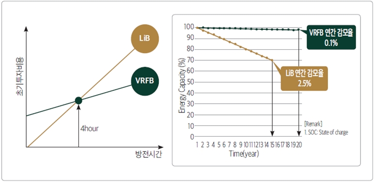 Exhibit 3. VFB vs. Li Battery: 균등화발전비용 및 연간 감모율 비교