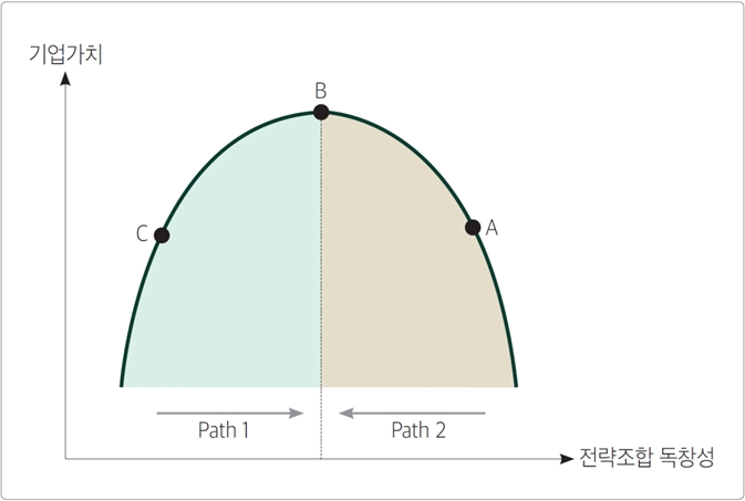 • 전략조합의 고유성이 적절해 시장과 투자자들로부터 높은 평가를 받는 경우 (포인트 B)