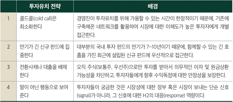 Exhibit 5. H2 한신 대표의 투자유치 네 가지 원칙