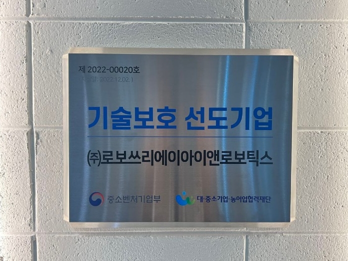 로보쓰리에이아이앤로보틱스, 중기부 ‘기술보호 선도기업’ 선정