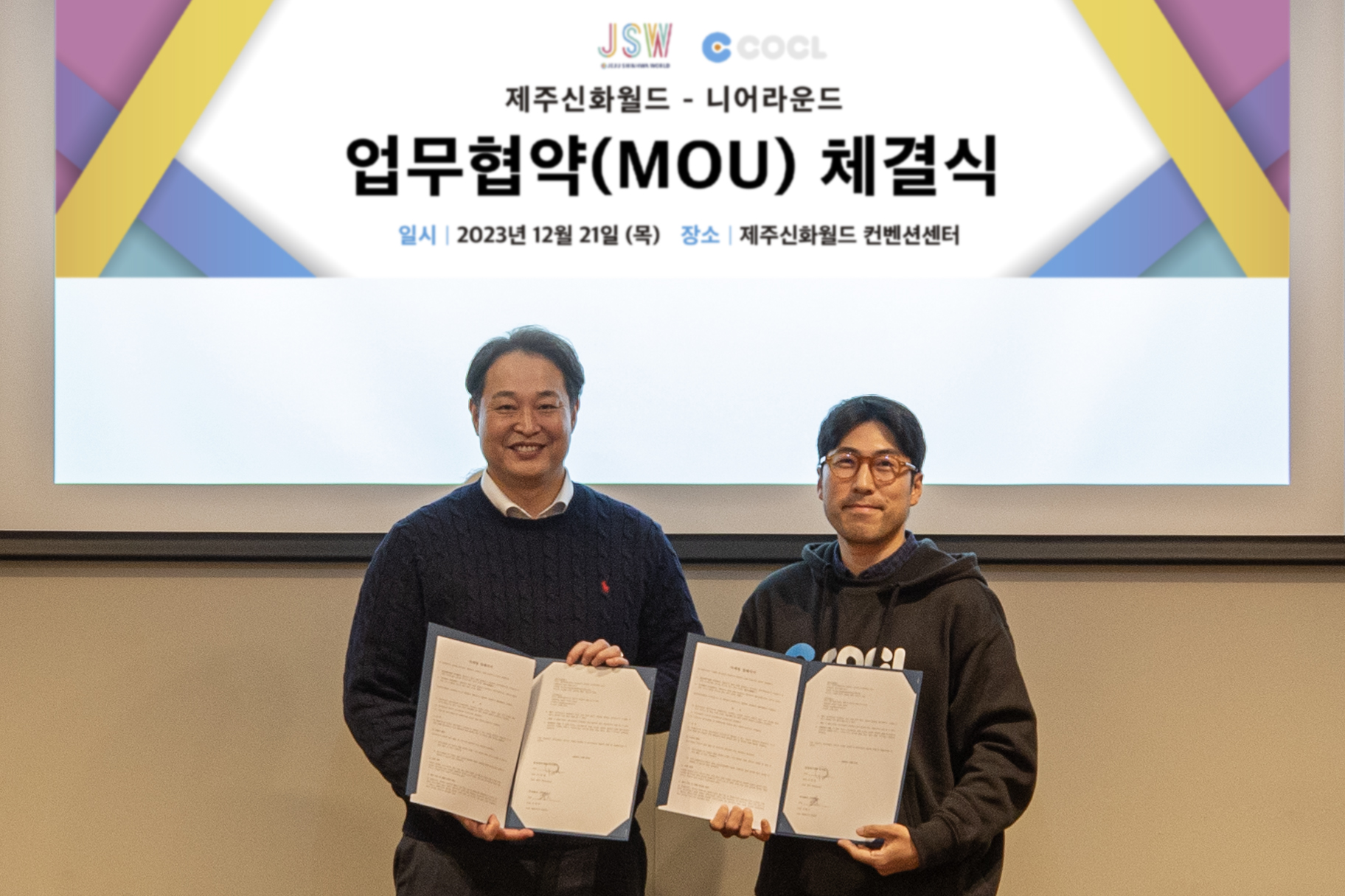 제주창조경제혁신센터(이하 제주센터)는 보육기업 니어라운드가 제주신화월드와 제주 로컬 카페 활성화를 위한 업무협약을 21일 체결했다.