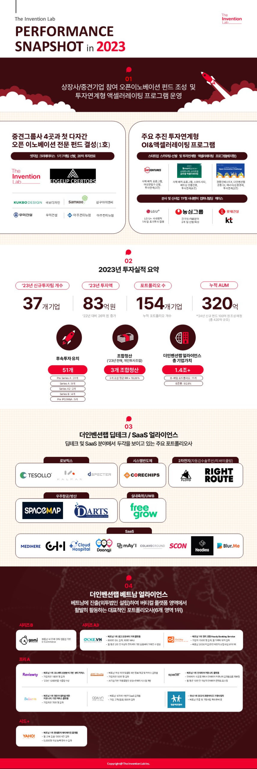 스타트업 초기투자기관인 더인벤션랩에서 2023년 1년 간 투자 실적 및 성과를 발표했다.
