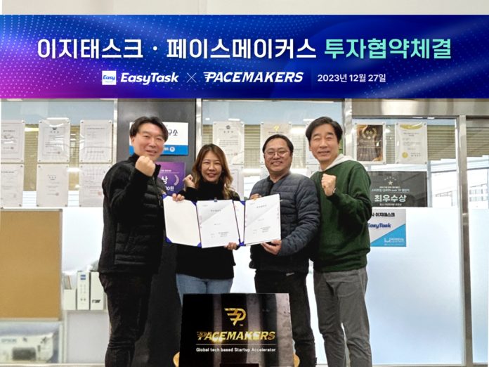 1년 365일 24시간 실시간으로 재택근로자를 연결하는 이지태스크가 글로벌 딥테크 액셀러레이터인 페이스메이커스로 부터 지난 12월27일 Pre-A투자유치(투자금 비공개)를 했다고 지난 3일 밝혔다.