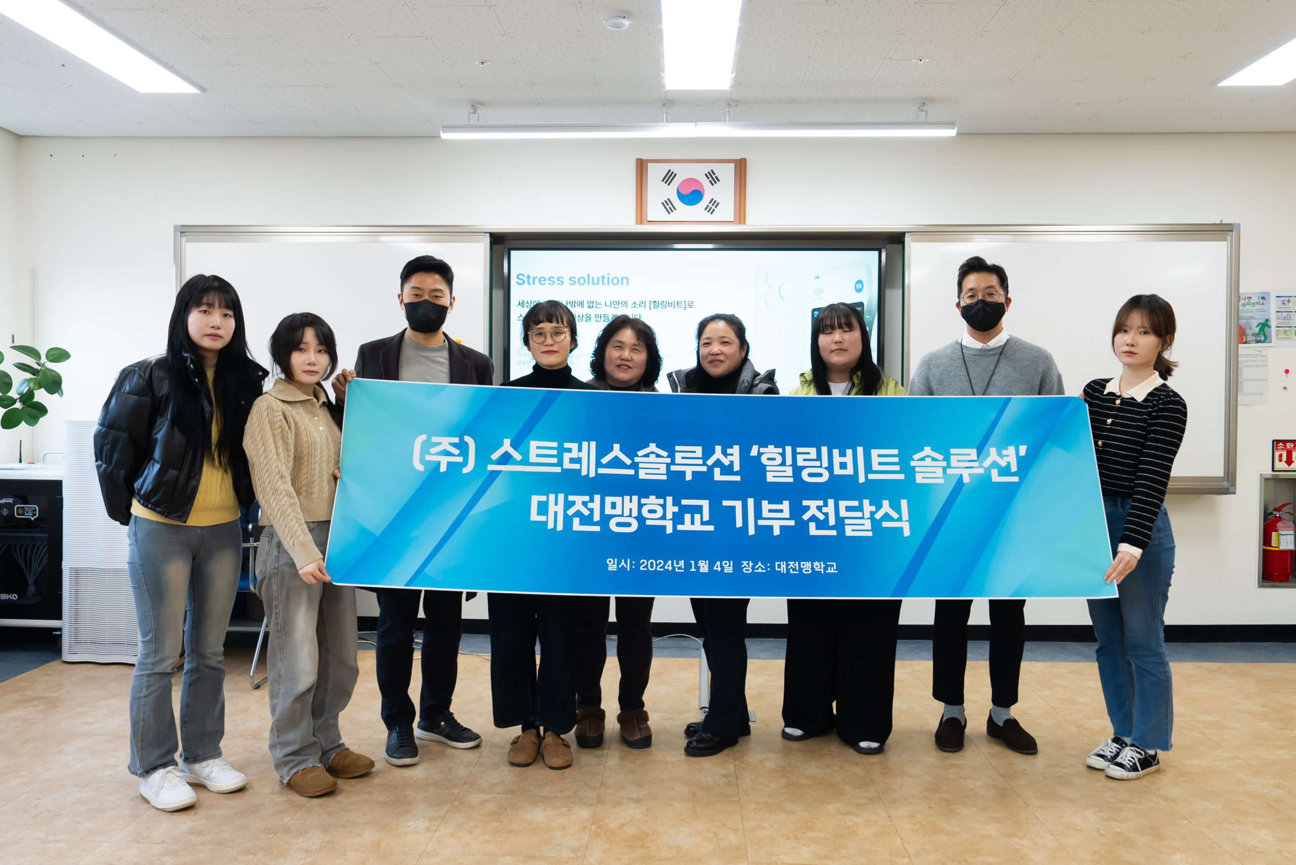 소셜벤처 기업 주식회사 스트레스솔루션이 SK행복나눔재단의 CSAP 사업의 일환으로, 시작장애인을 대상으로 한 ‘힐링비트 솔루션’ 기부 전달식을 대전맹학교에서 진행했다.