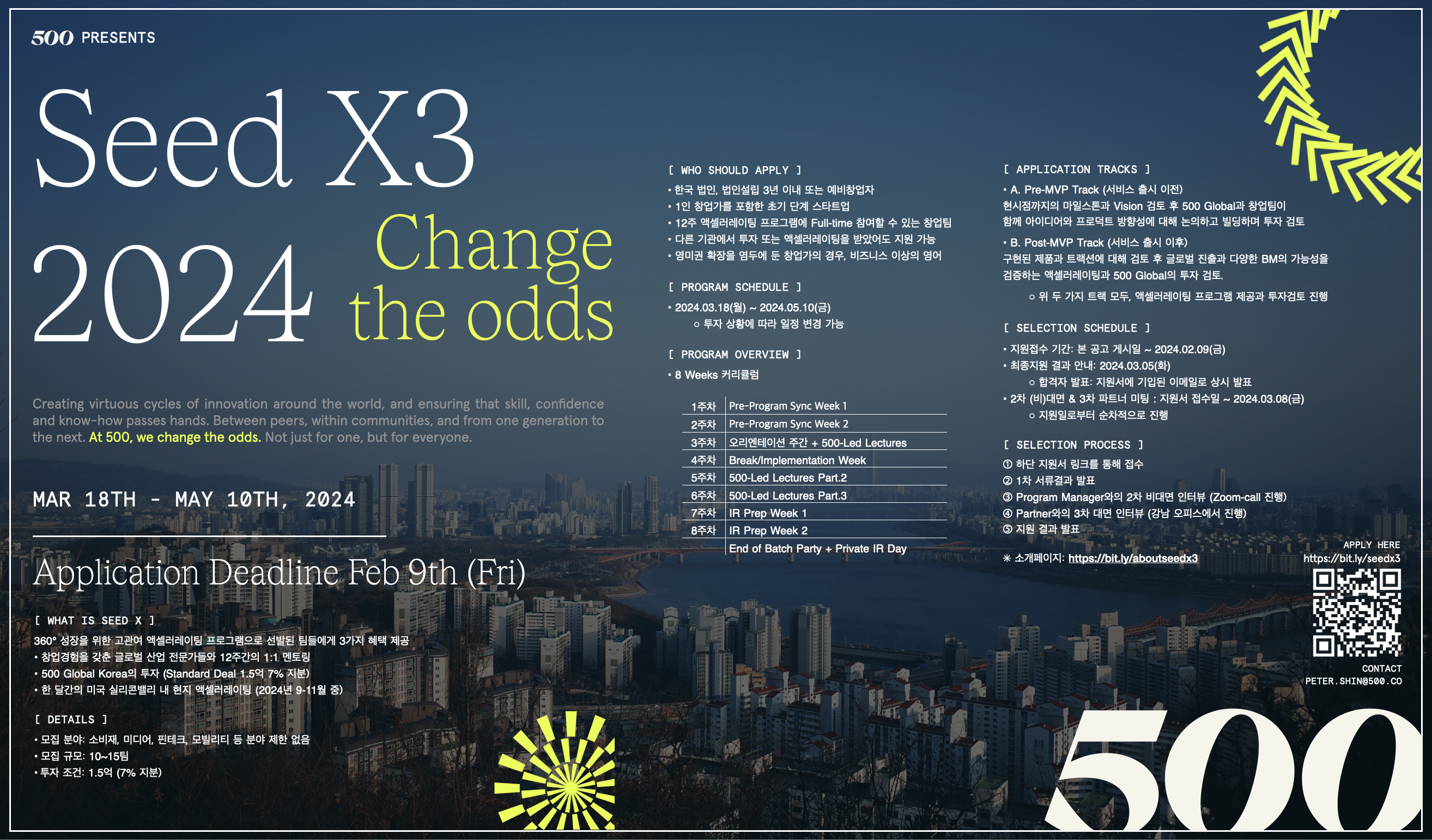 500글로벌(500 Global)에서 2024년 1월 8일부터 2024년 2월 9일까지 초기 스타트업 대상 엑셀러레이팅 프로그램인 Seed X3에 참여할 기업을 모집한다.