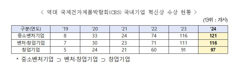 CES 2024 참여 벤처·창업기업, 혁신상 수상 실적 121개사 예상