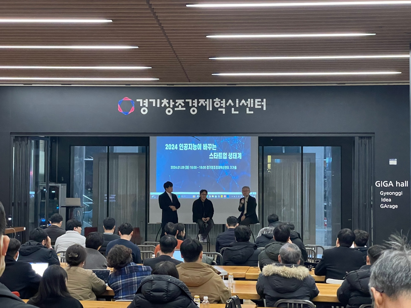 이번 행사는 지난 9일 오후 4시부터 6시까지 경기도 성남시 분당구에 위치한 경기창조경제혁신센터 1층 기가홀에서 ‘2024년, 인공지능이 바꾸는 스타트업 생태계’를 주제로 개최됐다.