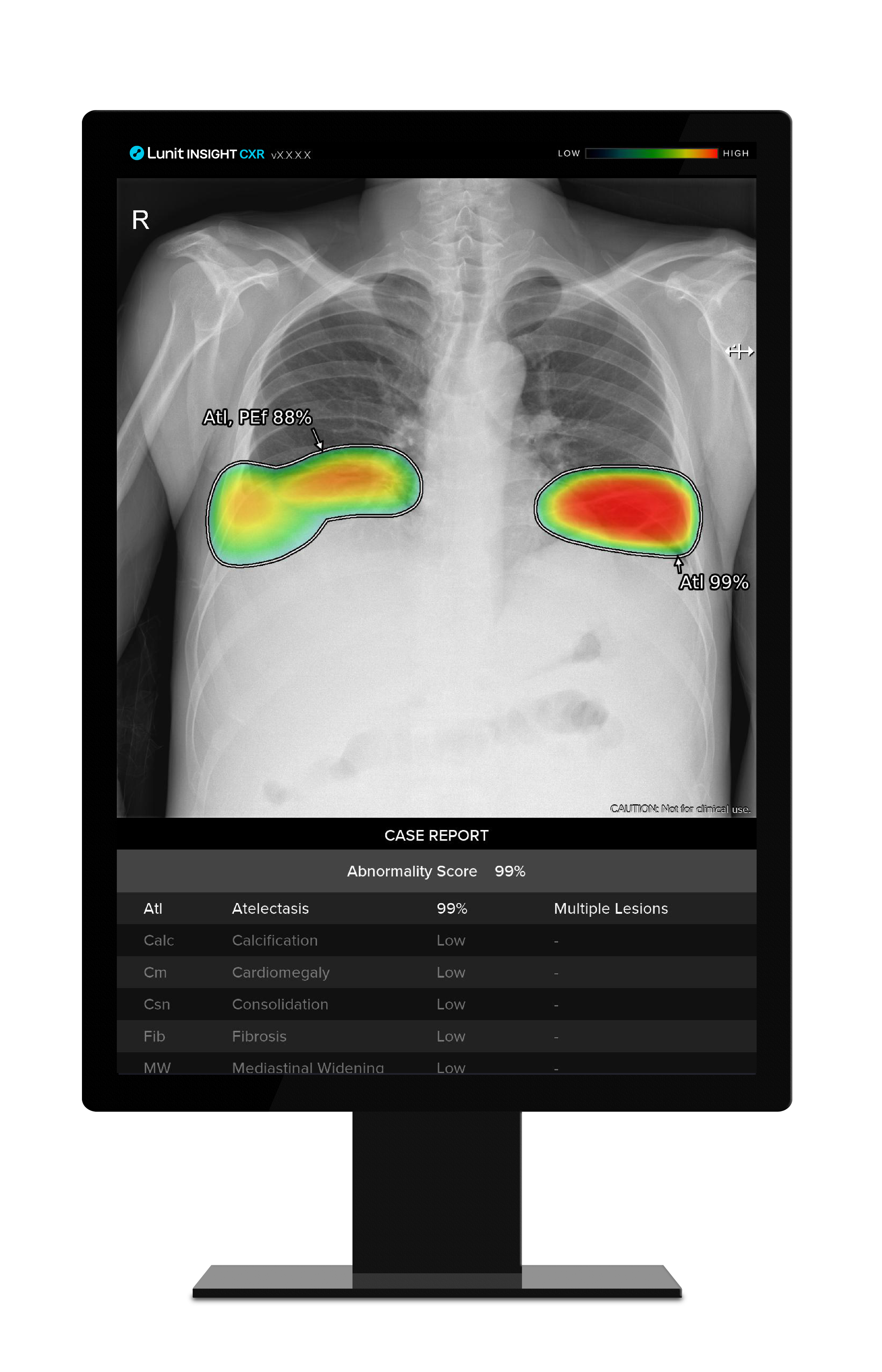 루닛 인사이트 CXR은 흉부 엑스레이 영상에서 폐결절, 섬유화, 석회화 등 10가지 흉부 질환을 검출해 의료진의 진단을 보조하는 AI 솔루션이다. 루닛 인사이트 CXR 트리아지는 기흉, 흉수 등 응급 질환의 정상 및 비정상 소견을 자동분류하는 AI 솔루션으로, 지난 2021년 11월 미국 식품의약국(FDA)의 허가를 획득했다.