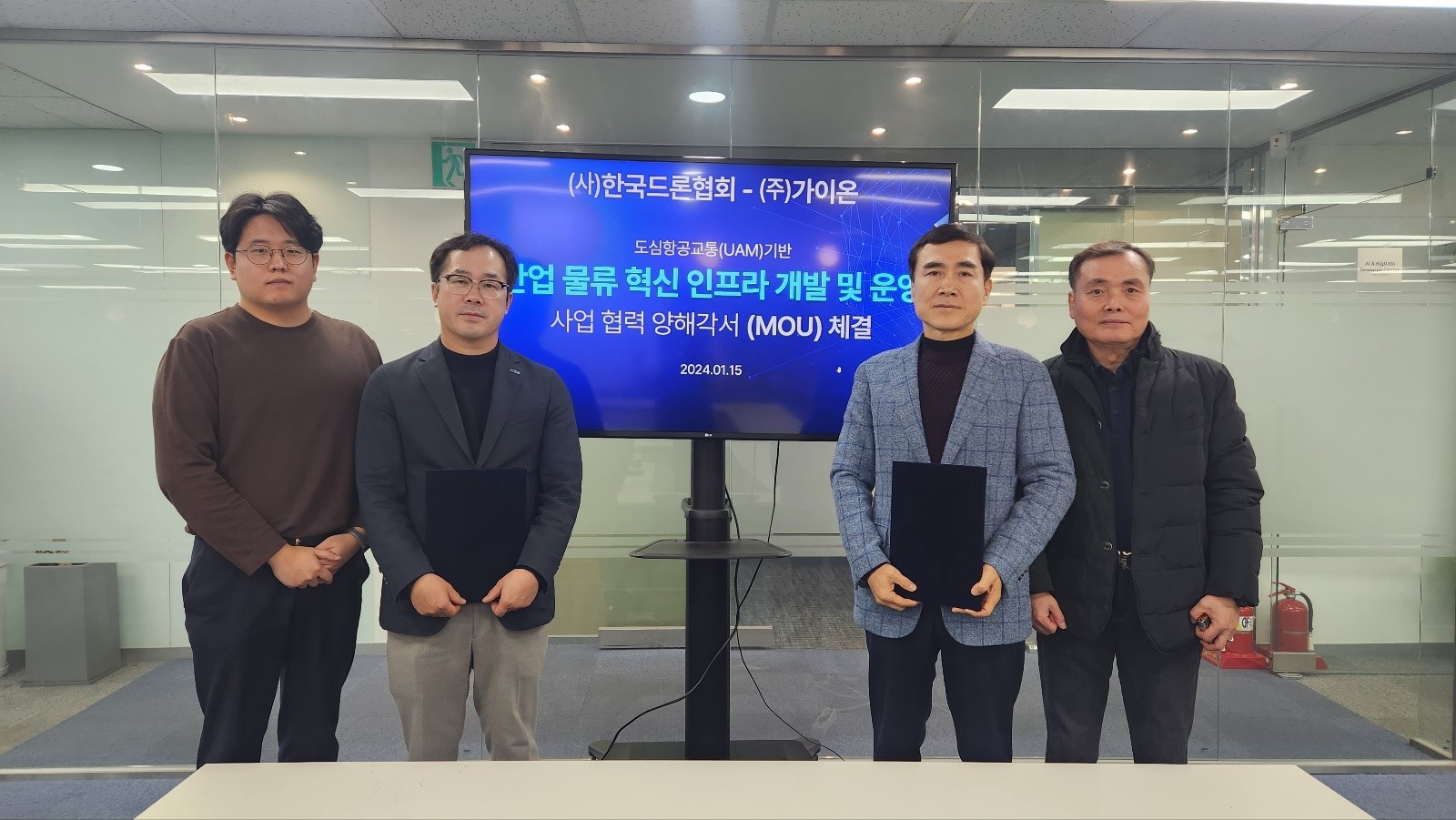 AI드론 전문기업 가이온이 15일 사단법인 한국드론협회와 도심항공교통(UAM) 기반 산업 물류 혁신 인프라 개발 및 운영에 관하여 MOU(업무협약)를 체결했다.