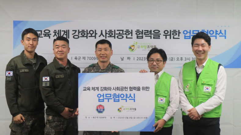 희망조약돌 관계자 배성근 부장은 “더 좋은 대한민국을 만들기 위해 교육 및 복지사업을 함께 하게 되어 감사하다”며 “7009부대와 함께 지역사회에 아름다운 기부 문화 확산을 목표로 열심히 노력하겠다”고 전했다.