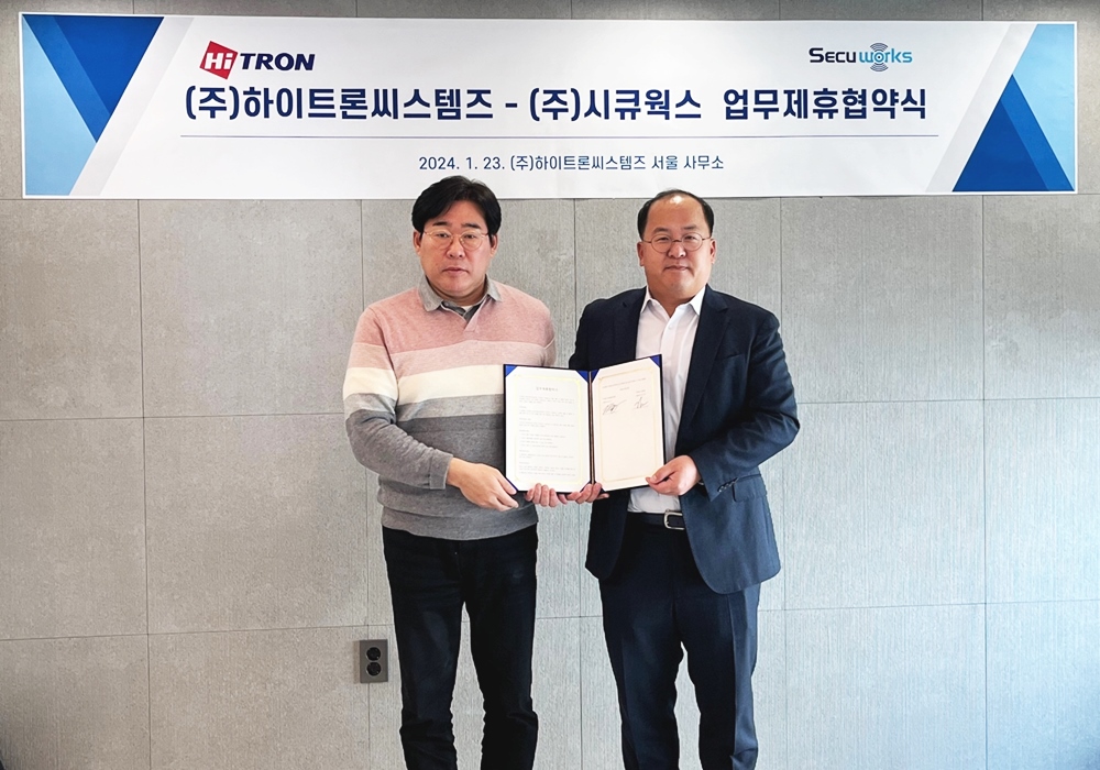 보안장비 전문기업 하이트론씨스템즈가 시큐웍스와 안전 솔루션 분야 사업영역 확대를 위한 업무협약(MOU)을 체결했다.