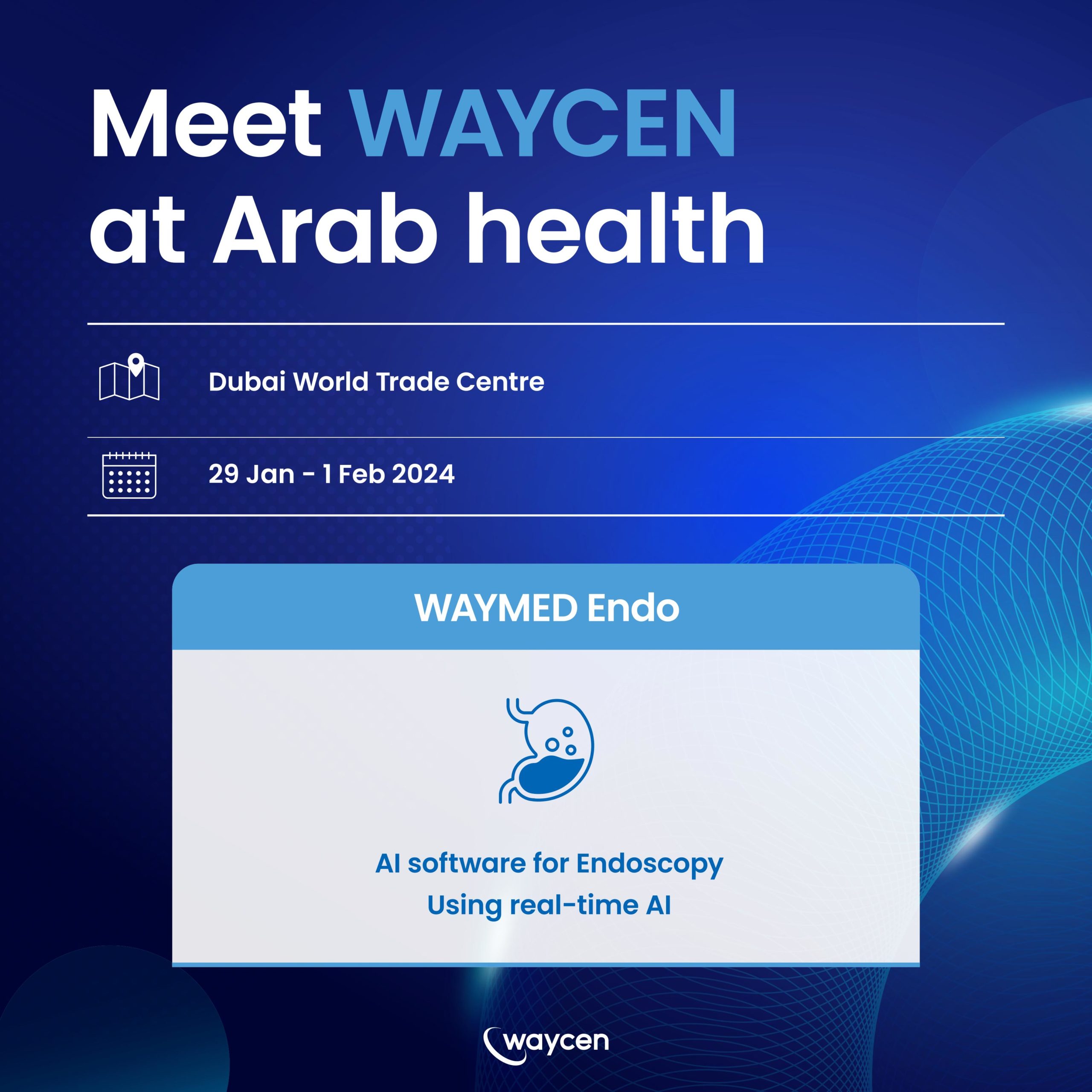 웨이센은 이번 아랍헬스에서 인공지능 위, 대장 내시경 의료기기 소프트웨어 ‘WAYMED Endo(웨이메드 엔도)’를 선보이고 아랍에미레이트(이하 UAE) 포함 중동시장 진출에 더욱 박차를 가할 예정이다. 이번 전시에서 선보이는 WAYMED Endo(웨이메드 엔도) 는 내시경 장비와 연동해서 사용하는 인공지능 의료기기 소프트웨어다. 실시간으로 내시경 영상을 분석해 위, 대장 내 이상병변을 감지해 고품질 내시경 검사를 진행할 수 있게 도움을 주는 제품이다.