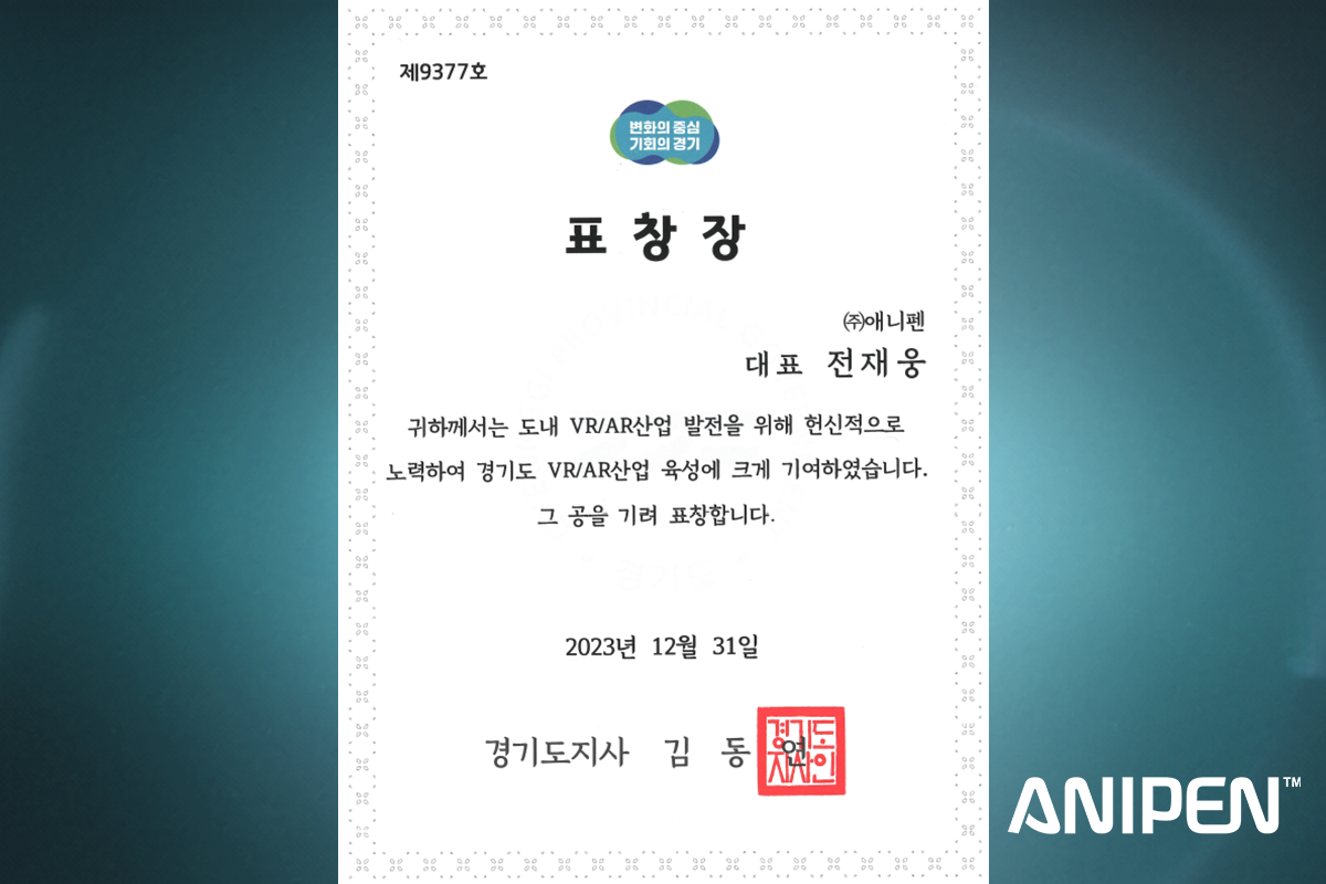 또한 애니펜은 VR·AR 산업 발전을 위해 노력하여 경기도 VR·AR 산업 육성에 기여한 점을 인정받아 경기도지사 표창을 받았다. 경기도 창업 기업으로서 경기콘텐츠진흥원이 주관한 상생 오픈이노베이션 지원 사업을 통해 디지털 트윈 기반의 3차원 공간을 구축하여, 3D 콘텐츠를 포함한 카탈로그 제작이 가능한 기반을 마련하는 프로젝트를 완수했다.