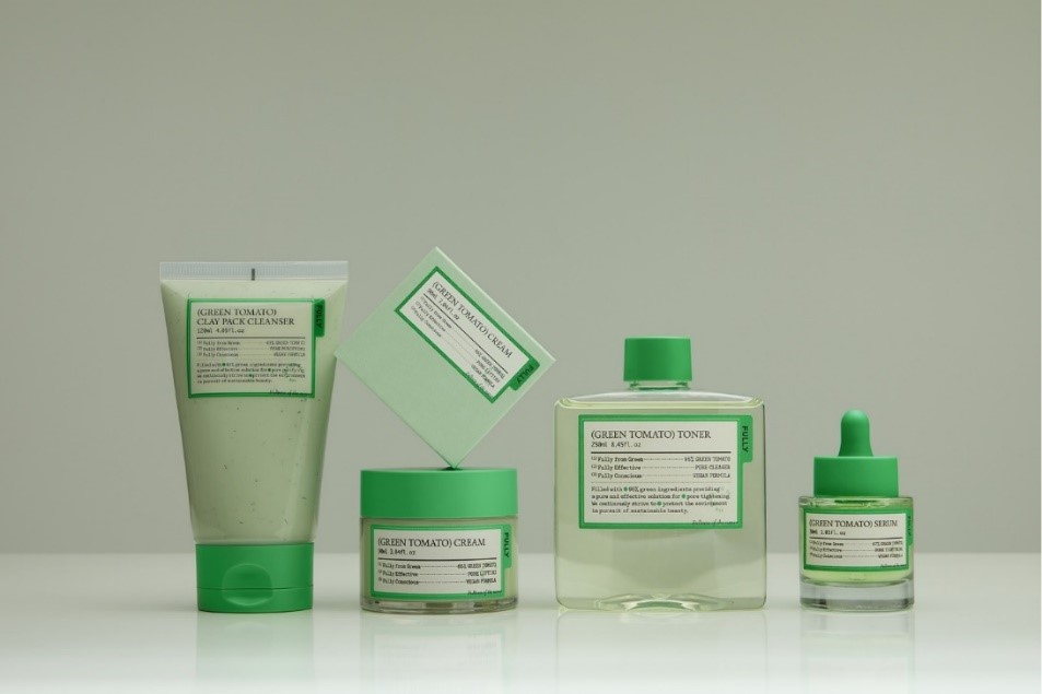 풀리에서 처음 선보이는 ‘그린토마토 스킨케어 라인’ 4종은 그린 토마토 추출물을 주원료로 해 모공 탄력과 피지, 피부 결을 한 번에 관리할 수 있도록 도와주는 제품이다. 세안 단계에서 데일리 클렌저 혹은 팩으로 사용 가능한 ▲그린 토마토 클레이 팩 클렌저, pH 밸런스 조절을 위한 약산성 ▲그린토마토 토너, LHA&PHA 성분을 함유해 각질 필링 효과를 선사하는 ▲그린토마토 세럼, 7종 모공 축소 및 모공 탄력 관리를 도와주는 ▲그린토마토 크림 등 4종으로 구성돼 단계별 피부 관리가 가능하다.