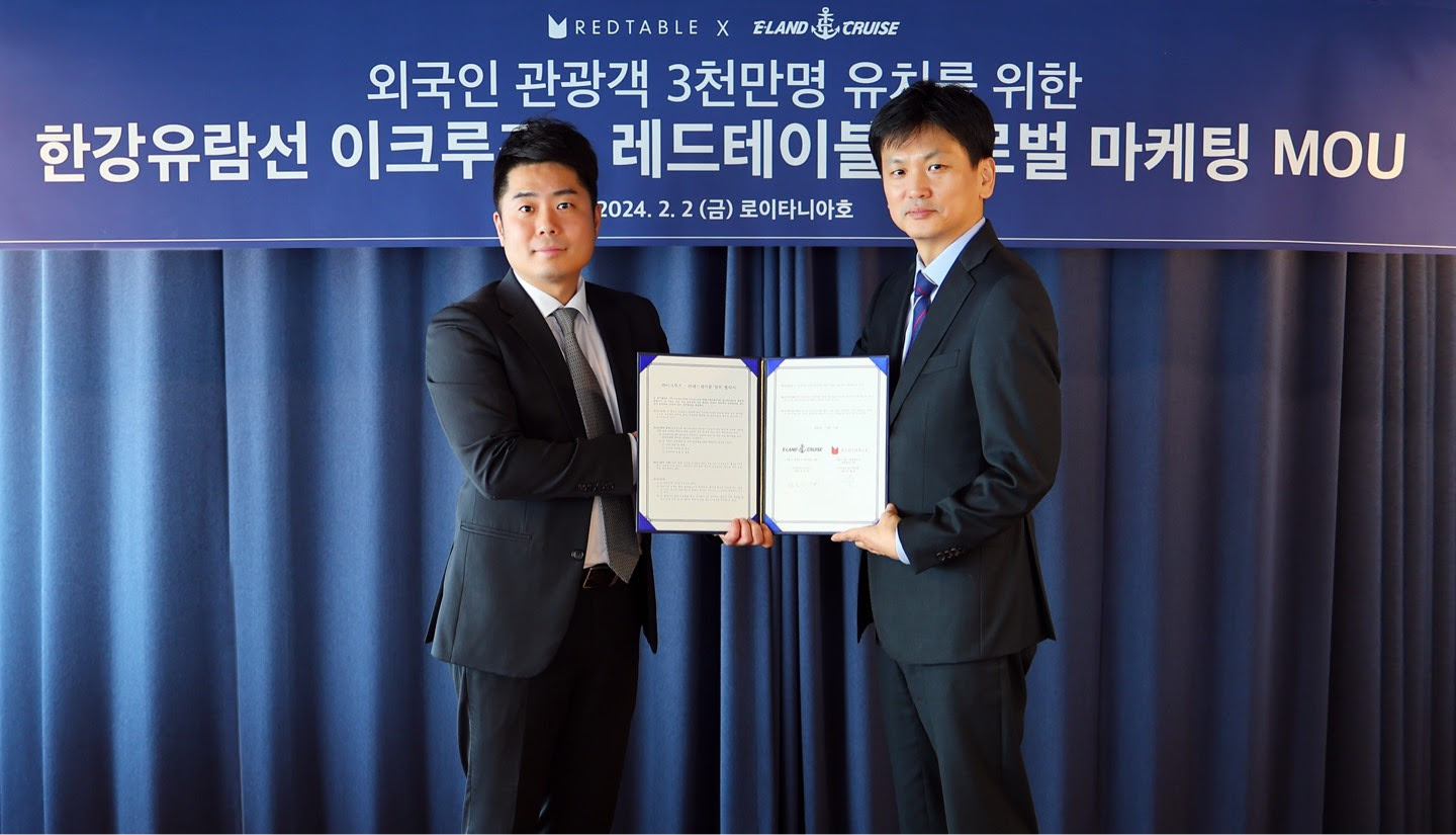 3,000만 외국인 관광객 유치를 위해 이크루즈와 레드테이블이 MOU 협력을 맺었다.