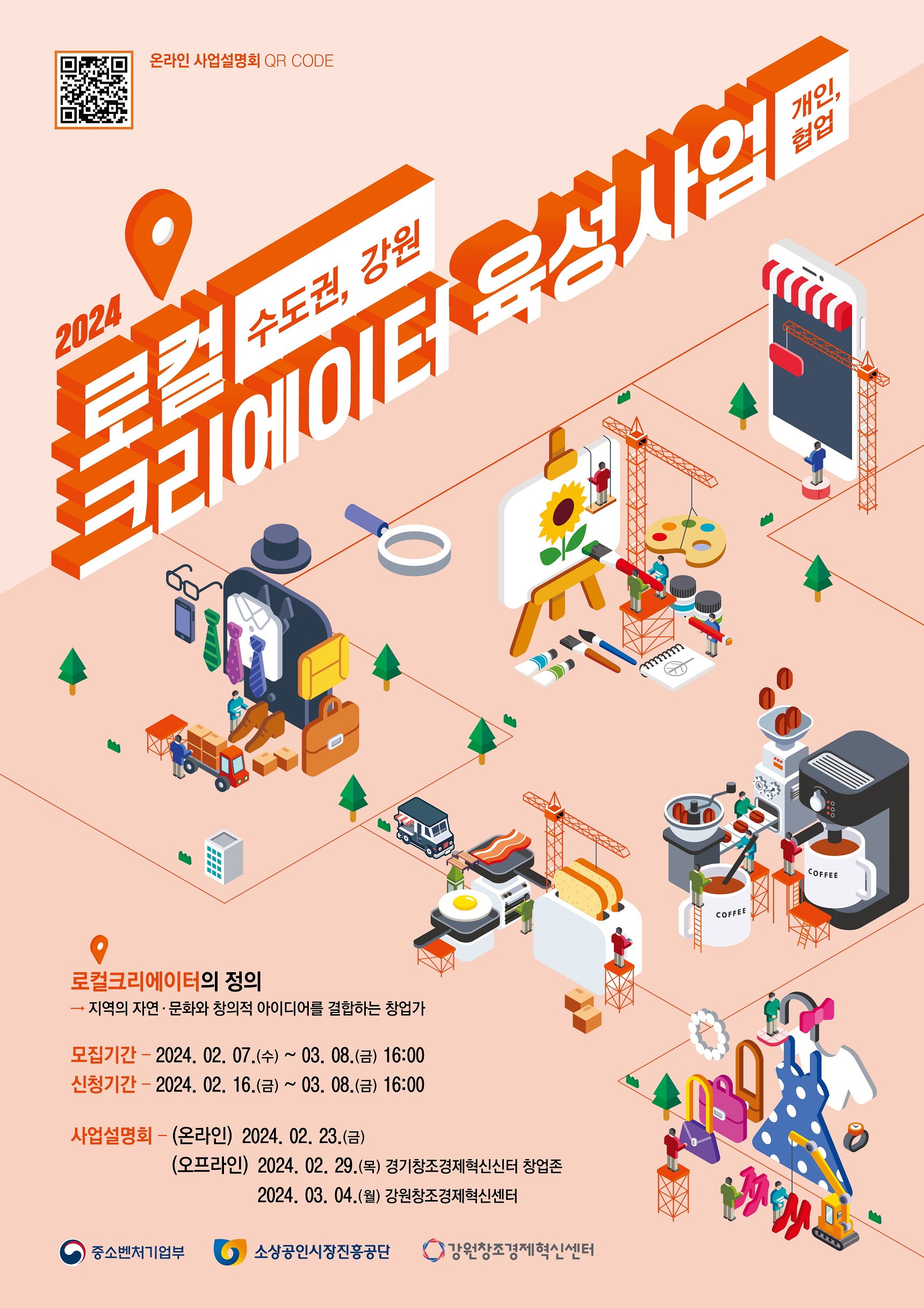 한편 ‘로컬크리에이터 육성 사업’은 중소벤처기업부, 소상공인시장진흥공단과 함께 전국 5개 창조경제혁신센터(강원, 세종, 전남, 경북, 제주)에서 로컬크리에이터(지역가치 창업가)*를 발굴·육성하고자 추진 중이며, 강원혁신센터는 강원권역과 수도권(서울, 경기, 인천) 기업을 담당한다.