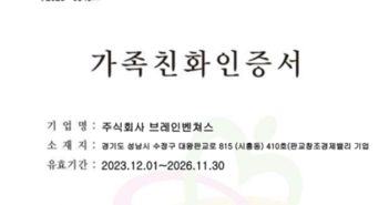 인공지능 자연어처리 전문 벤처기업 ‘브레인벤쳐스’가 여성가족부가 주관하는 ‘가족친화인증’을 신규 획득했다고 21일 밝혔다. 가족친화인증은 일과 가정이 조화로운 가족친화 직장문화를 조성하기 위해 자녀 출산과 양육지원, 유연근무제 등 가족친화제도를 모범적으로 운영하는 기업을 대상으로 인증을 부여하는 제도이다. 브레인벤쳐스는 서류심사와 최고 경영층 인터뷰를 비롯한 직원만족도 조사, 기관 현장심사 등 엄격한 심사를 거쳐 ‘가족친화인증’을 처음으로 획득했다. 브레인벤쳐스는 회사를 설립한 2020년부터 효율적인 목표달성과 출퇴근 경감을 위해 주 2회 재택근무를 시행하고 있다. 이밖에 연초 1주간 휴가지원, 근로시간 단축, 임직원 자기계발 교육 지원, 유연근무제 등 일과 가정의 균형을 위한 다양한 가족친화제도를 도입해 일과 가정의 균형을 위한 근무 환경 조성에 적극 나서고 있다. 브레인벤쳐스는 현재 중소벤처기업부가 설립하고 창업진흥원·경기창조경제혁신센터가 운영하는 판교 창업존 입주기업이다. 주요 기술로 웹툰 자동 OCR, 인공지능 다국어 번역 및 인공지능 영상 콘텐츠 자동번역, 인공지능 주관식 채점, 제품 리뷰 인공지능 자동 분석 서비스를 제공한다. 브레인벤쳐스 김원회대표는 “일과 생활의 균형을 지원함과 동시에, 직원들이 즐겁게 일할 수 있는 기업을 만들기 위해 노력하고 있다”며 “가족친화적인 경영을 통하여 브레인벤쳐스 임직원 모두가 회사 안팎에서 건강한 생활을 이어나갈 수 있도록 힘쓰겠다”고 밝혔다. 관련 기사 더 보기 https://www.venturesquare.net/911109
