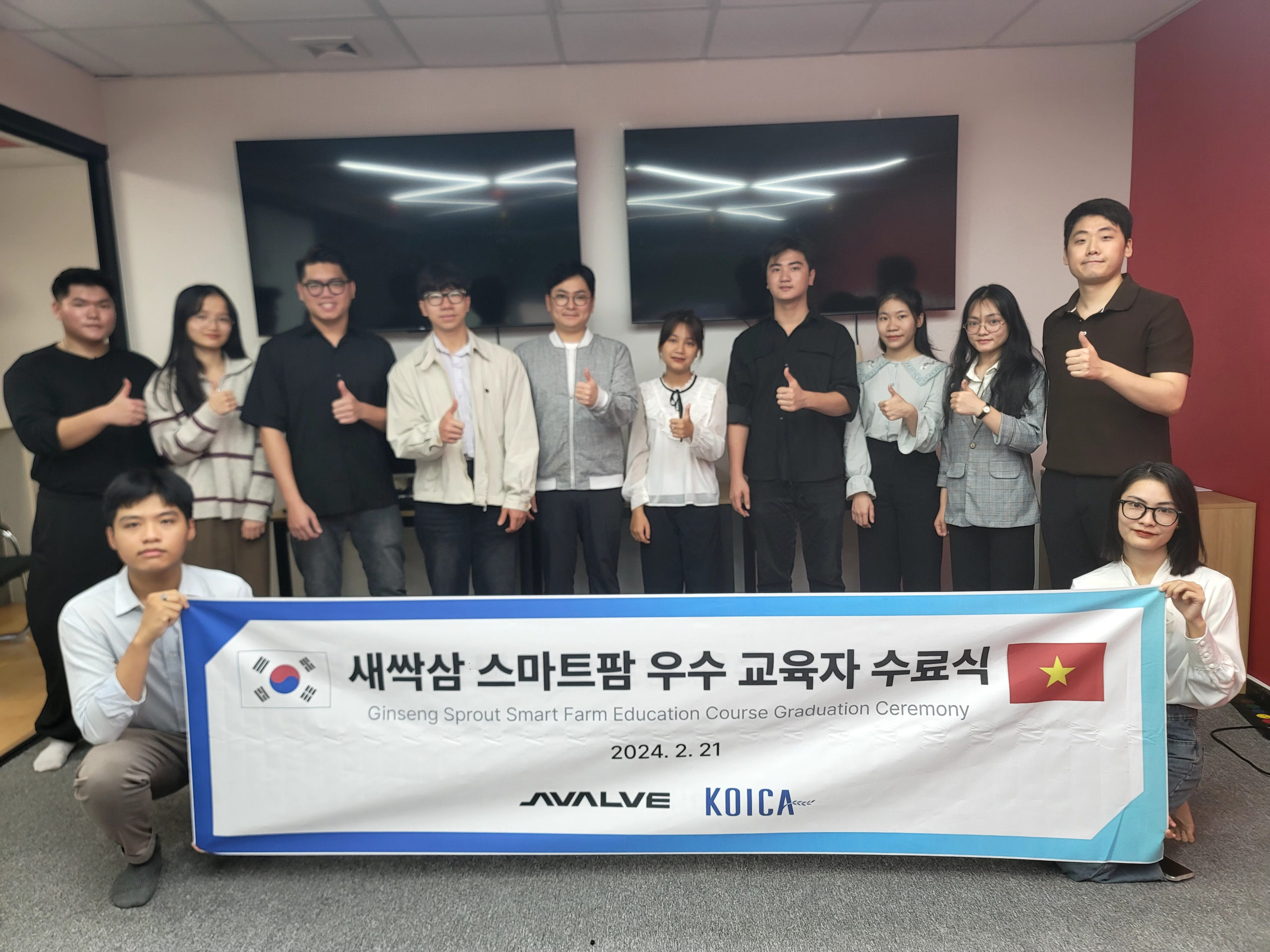 스마트팜 AI 솔루션 개발 기업인 어밸브가 KOICA의 CTS 사업 중 베트남 중소농들에게 새싹삼 재배 기술이전을 마쳤다.