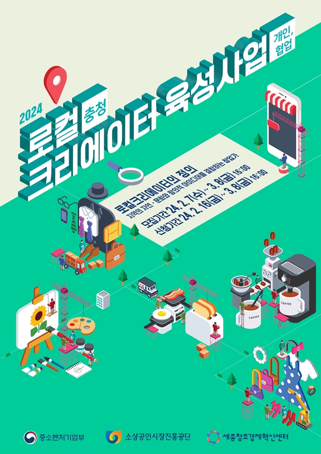 세종창조경제혁신센터(이하 세종센터)에서 중소벤처기업부와 소상공인시장진흥공단이 실시하는 2024년도 강한소상공인 성장지원사업(라이프 스타일 유형), 신사업창업사관학교, 로컬크리에이터 육성사업에 참여할 지원자를 모집한다.