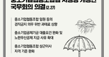 중소벤처기업부(장관 오영주)는 중소기업공제기금 대출 요건 완화, 노란우산공제 지급사유 확대, 중소기업협동조합 상근이사 자격기준 완화 등을 주요 내용으로 하는 ‘중소기업협동조합법 시행령’ 개정안을 27일 국무회의에서 의결했다고 밝혔다. 이번 개정은 중소기업협동조합에 대한 감독을 강화하기 위하여 과태료 부과금액을 상향 조정하는 ‘중소기업협동조합법’이 지난해 9월 14일에 개정됨에 따라 후속으로 시행령에 위임된 필요 사항을 정하기 위한 것이며, 중소기업공제기금 대출요건 완화, 노란우산공제 공제금 지급사유 확대 등 제도 운영에 필요한 일부 개선 내용도 포함되었다. ◆ 주요 개정내용은 다음과 같다. ① 과태료 상한액 상향 조정 중소기업협동조합의 임원 등이 겸직금지 의무를 위반하는 경우의 과태료를 10~50만원에서 100~500만원으로 상향하는 등 과태료 부과금액을 합리적으로 조정하였다. ➁ 중소기업공제기금 대출요건 완화 및 노란우산공제 지급 사유 확대 중소기업공제사업기금에 가입한 중소기업자에게 대출하는 요건을 완화하여 종전에는 3개월 이상 중소기업공제부금을 내야만 대출을 받을 수 있었으나 앞으로는 1개월 이상 납부하면 대출받을 수 있도록 했다. 또 사실상 폐업 단계에만 지급받을 수 있었던 노란우산공제를 재난이나 질병 등 일시적 경영위기를 겪을 경우에도 공제금을 활용할 수 있도록 지급사유를 확대했다. ➂ 협동조합 상근이사 자격기준 개선 및 휴면조합 지정요건 강화 기존 공무원 경력자 등 까다로운 중소기업협동조합 상근이사 자격 기준을 완화하여 중소기업협동조합 상근이사를 다양한 분야의 전문가를 활용할 수 있도록 개선하고, 중소기업협동조합의 휴면조합 지정 요건*에 이사장 1년 이상 공석인 경우와 자기자본 전액 잠식 후 1년 이상 경과한 경우를 추가하여 부실 운영 중소기업협동조합에 대한 조기퇴출을 유도하고, 중소기업협동조합의 건전성을 제고하고자 했다. 오영주 장관은 “이번 개정으로 공제기금 대출요건이 완화되고, 노란우산공제금 지급사유가 확대되어 경영안정을 위한 자금수요에 어려움을 겪고 있는 중소기업과 소상공인에게 큰 도움이 될 것으로 기대한다”며 “앞으로도 현장의 의견을 적극적으로 수렴하여 중소기업협동조합 운영에 있어 불합리한 제도 등을 발굴하여 개선해 나갈 계획”이라고 밝혔다. 관련 기사 더 보기 https://www.venturesquare.net/914975