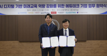 글쓰기 AI 자동 평가 전문 에듀테크 기업인 ㈜투블럭에이아이가 한국교원대와 에듀테크 분야의 인재 양성과 미래 교육 발전에 기여하기 위한 상호 협력을 위해 업무협약(MOU)을 체결했다. 양 기관은 이번 협약을 통해 ▲학교 현장 교사와 예비 교사들의 AI·디지털 역량 강화를 위한 교육과 연수 지원 ▲에듀테크 분야 공동 연구 및 기술 지원 ▲산학공동 기술 개발 및 연구 사업 지원을 위한 협력 사업 지원 ▲전문 인력 교류 및 공동 활용을 추진해 나가기로 했다. 이번 협약을 통해 교원대학교는 교원 양성과 연수 과정에 문해력 분야의 에듀테크 활용 역량을 지원하기 위한 연구, 개발, 실증, 에듀테크 활용 수업 모델 개발 등의 분야에서 교류 확대와 협력 관계를 구축하게 됐다. 양 기관은 업무 협약(MOU) 체결에 앞서 겨울방학 기간 동안 에듀테크 역량 강화를 위한 '줄탁동시 미래교실' 프로그램을 통해 (예비)교원 및 교직원 대상 에듀테크 특강 및 콘텐츠 활용 실습을 진행하였다. '인공지능 기반 한국어 문해 교육 및 평가'라는 주제로 24년 1월 챗GPT의 원리와 개인 맞춤형 교육 활용 방안, 글쓰기 AI 평가 소개와 즉시적 평가를 통한 학습 활용 방안 등에 대한 교육 프로그램을 운영했다. 또한 교육에 활용된 에듀테크 콘텐츠인 키위티, 키위런, 키위챗 등을 실습하고 활용할 수 있도록 콘텐츠 지원도 함께 진행됐다. 투블럭AI의 조영환 대표는 “교원대학교가 미래 교원을 위한 디지털과 AI 변화를 선도하는 것에 감동했다”라며 “AI 보조교사를 활용한 수업 모델의 개발, 제품의 실증 기회를 활용해서 공교육 혁신에 기여하겠다”고 말했다. 관련 기사 더보기 https://www.venturesquare.net/887136