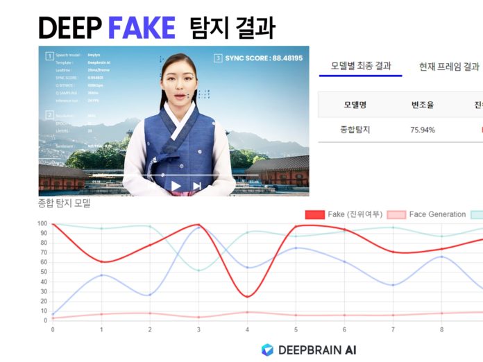 국내 생성형 인공지능(AI) 전문 기업 딥브레인AI(대표 장세영)가 경찰청과 협력해 딥페이크 범죄 단속을 돕는 딥페이크 탐지 솔루션을 선보였다고 15일 밝혔다.