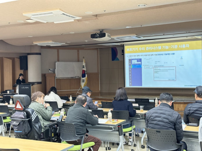 센터는 수리 시스템을 확대 보급하기 위해 경기도 내 31개 시군을 대상으로 보조기기 수리 관리 시스템 사용을 독려하기 위한 홍보를 진행함과 동시에 19일 경기도장애인복지종합지원센터-누림 대회의실에서 사업설명회를 진행했다.