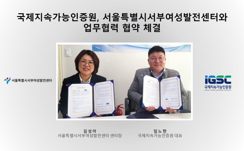 국제지속가능인증원(대표 임노현)은 서울특별시서부여성발전센터(센터장 김성아)와 청년여성 및 경력단절여성의 사회참여 및 경제활동을 위해 직업교육훈련 업무협약을 체결했다고 21일 밝혔다.