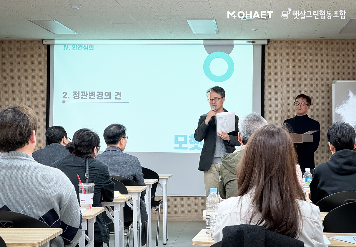 햇살그린협동조합 총회에 참석한 A 조합원은 “매월 모햇 홈페이지에서 월간 공시를 확인할 수 있지만, 이번 기회를 통해 다른 조합원들과 함께 조합의 현황 및 계획에 대해 들으니 모햇의 사업 모델을 더 자세히 이해할 수 있는 것 같아 좋았다”라고 말했다.