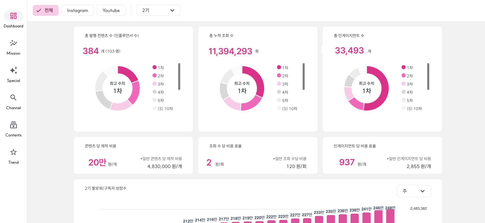 인플루언서 영향력 분석 스타트업 피처링이 종합광고대행사 HS애드가 피처링의 맞춤형 엔터프라이즈 서비스를 도입해 인플루언서 마케팅의 효율성을 높였다고 26일 밝혔다. 피처링은 1300만개의 인플루언서 데이터와 3억개 이상의 소셜 콘텐츠를 실시간으로 수집 및 분석하는 피처링AI를 기반으로 엔터프라이즈 서비스를 제공하고 있다. 피처링의 엔터프라이즈 서비스는 기업 고객 별 요구에 따라 맞춤형으로 제작돼 마케팅 인사이트를 도출할 수 있도록 다양한 데이터 지표들을 분석 및 제공한다. HS애드는 피처링의 맞춤형 엔터프라이즈 서비스를 통해 크리에이터 육성 프로그램에 ‘크리에이터 대시보드’를 도입했다. 크리에이터 대시보드는 인플루언서의 활동을 관리하고 인플루언서가 게시한 콘텐츠의 데이터와 성과를 분석할 수 있도록 한 기능이다. ▲업로드 주기 ▲콘텐츠 길이 ▲상위 노출 해시태그 등 콘텐츠 퀄리티 향상에 필요한 세부 데이터를 분석해 제공한다. 피처링 장지훈 대표는 “인플루언서 마케팅을 진행하는 기업의 경우 산업과 업종이 다양해 각 기업별로 원하는 기능이 다르다”라며 “피처링은 각 기업이 진행하고자 하는 마케팅 캠페인에 맞춰 엔터프라이즈 서비스를 제공해 효율적으로 성과를 낼 수 있도록 돕고 있다”라고 말했다. 관련 기사 더보기 https://www.venturesquare.net/913590