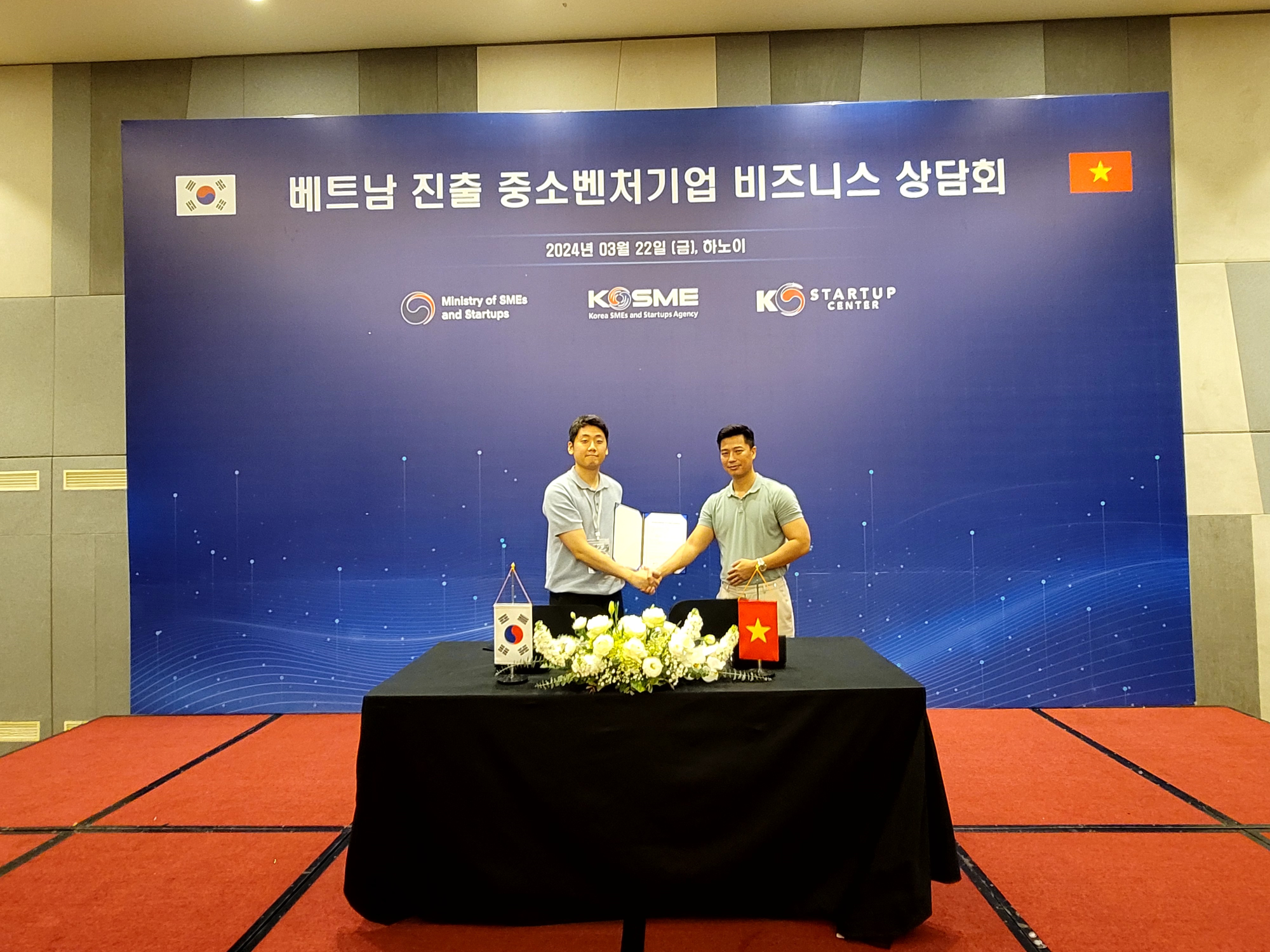 ‘베트남 진출 중소벤처기업 비즈니스 상담회’가 열린 이날 어밸브가 MOU 계약을 체결한 곳은 2곳으로, 각각 안스텍(ANSTECH)과 아파그룹(APPA GROUP)이다. 안스텍은 스마트팜을 비롯한 스마트 솔루션 및 전기 모듈 제작을 사업 분야로 삼고 있으며, 어밸브와 50만 달러 규모의 스마트팜 계약을 체결했다.