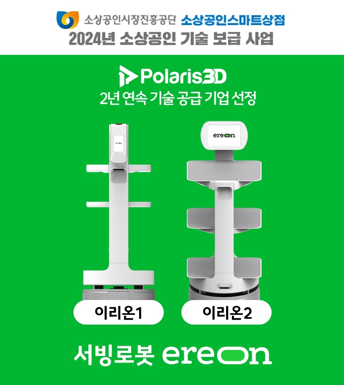 이에 폴라리스쓰리디는 100% 자체 개발한 국산 서빙로봇 ’이리온1’과 ‘이리온2’를 전국 소상공인 운영 매장에 공급하며, 4월 1일부터 오는 15일 저녁 6시까지 소상공인진흥공단 사이트에서 서빙로봇 도입 희망 신청을 받고 있다.