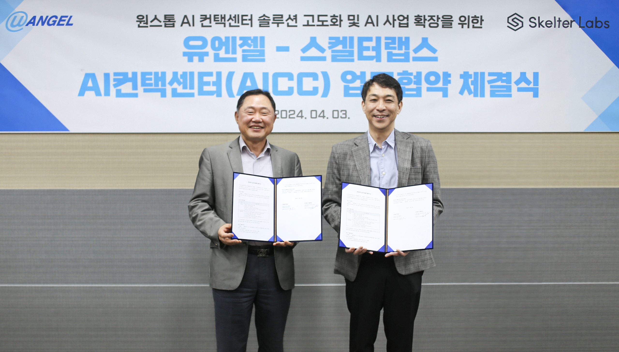 인공지능(AI) 기업 스켈터랩스가 모바일 네트워크 및 미디어 솔루션 기업 유엔젤과 AICC 솔루션 고도화를 위한 업무협약(MOU)을 체결했다고 4일 밝혔다.