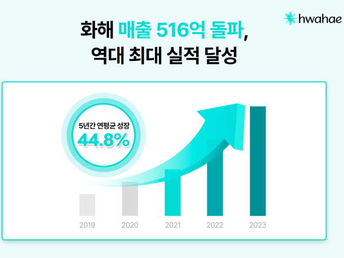 화해는 2023년 연결 기준 매출액 516억원을 돌파하며 사상 최대 매출을 거뒀다. 이는 전년 대비 30.2% 증가한 수치다. 5년간 연평균 매출 성장률은 44.8%를 기록하며 성장을 지속했다.