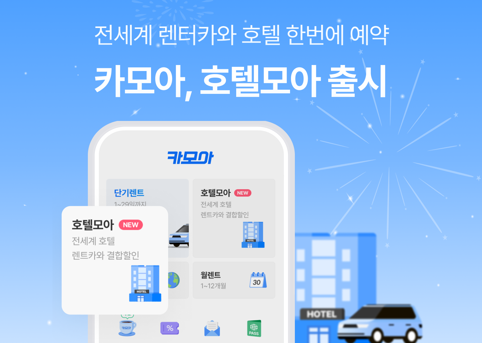 글로벌 렌터카 플랫폼 카모아가 숙박 예약 서비스 ‘호텔모아’를 출시했다고 9일 밝혔다. 이제 카모아를 통해 전 세계 71개국 렌터카와 200여 개국 숙박 상품을 어플리케이션(앱) 하나로 예약할 수 있다.