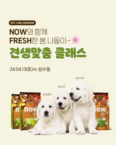 ‘now Fresh’ 사료는 100% 생육만을 사용해 자연 그대로의 맛과 영양을 고스란히 담아낸 것이 특징이며, 퍼피/어덜트/시니어 각 연령대의 반려견에게 맞춤 영양을 제공하도록 설계됐다.