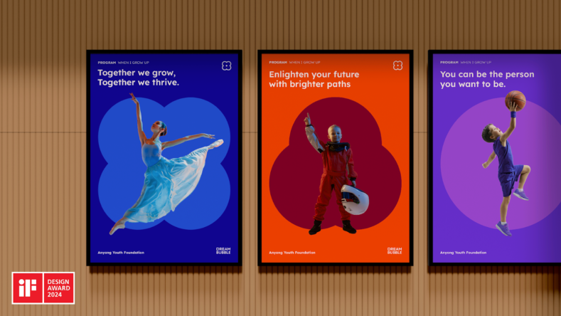 DREAM BUBBLE 아이덴티티 프로젝트는 안양시청소년재단의 청소년 활동, 보호, 복지 사업을 활성화해 지속 가능하고 신뢰받는 청소년 지원 및 보호 전문기관으로 도약하고자 진행한 프로젝트다. 무한히 자라나는 ‘청소년들의 다양한 꿈’을 ‘DREAM BUBBLE’이라는 브랜드 네임과 원형 유닛의 심볼에 담아 표현했다. 해당 프로젝트는 공공기관의 딱딱한 이미지에서 벗어나 주요 고객인 청소년 및 MZ세대의 감성과 시각에 맞춰, 브랜드 아이덴티티를 개발했다는 호평을 받으며 커뮤니케이션 부문의 본상을 받았다.