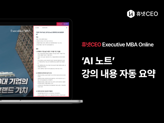 ‘AI 노트’는 최근 런칭한 프리미엄 교육 과정 ‘휴넷 CEO 이그제큐티브 MBA’에 우선 적용된다. 이후 순차적으로 활용 범위를 확대해 나갈 예정이다.