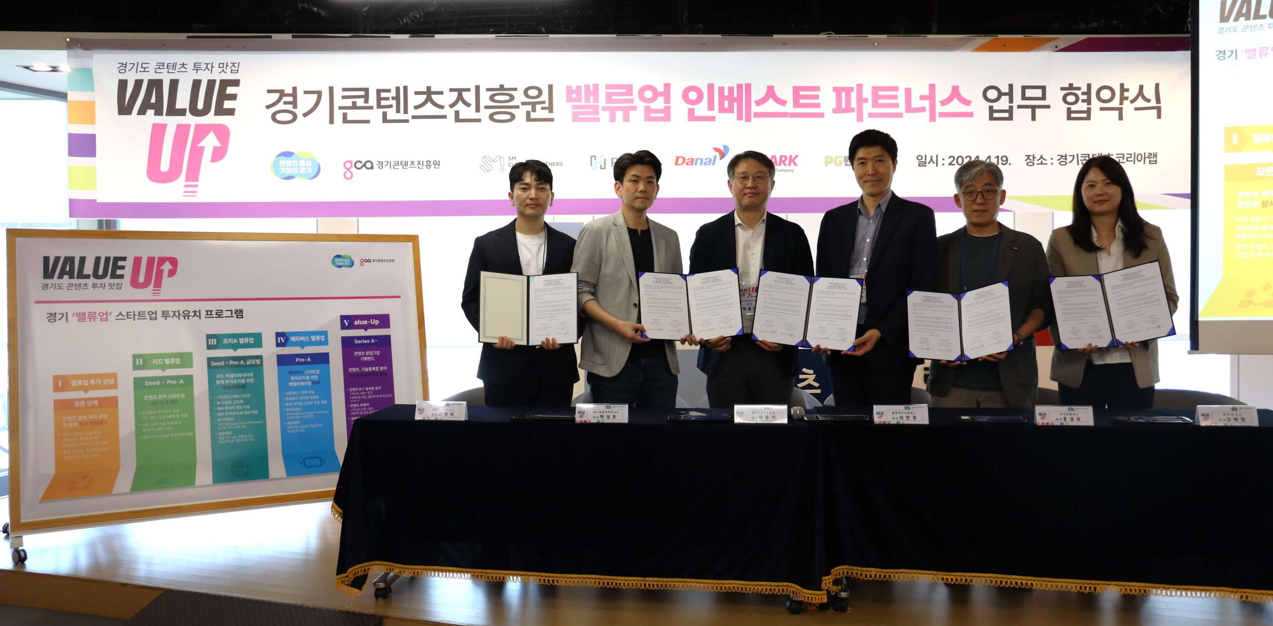 경기콘텐츠진흥원(이하 경콘진)은 도내 콘텐츠 기업의 투자유치 기회를 확대하기 위해 민간 전문 투자사 5개 사와 ‘경기 밸류업 인베스트 파트너스’ 협약을 체결하고, 파트너사들을 대상으로 2024년 스타트업 투자유치 프로그램 설명회를 19일 판교 경기 콘텐츠코리아 랩에서 진행했다.