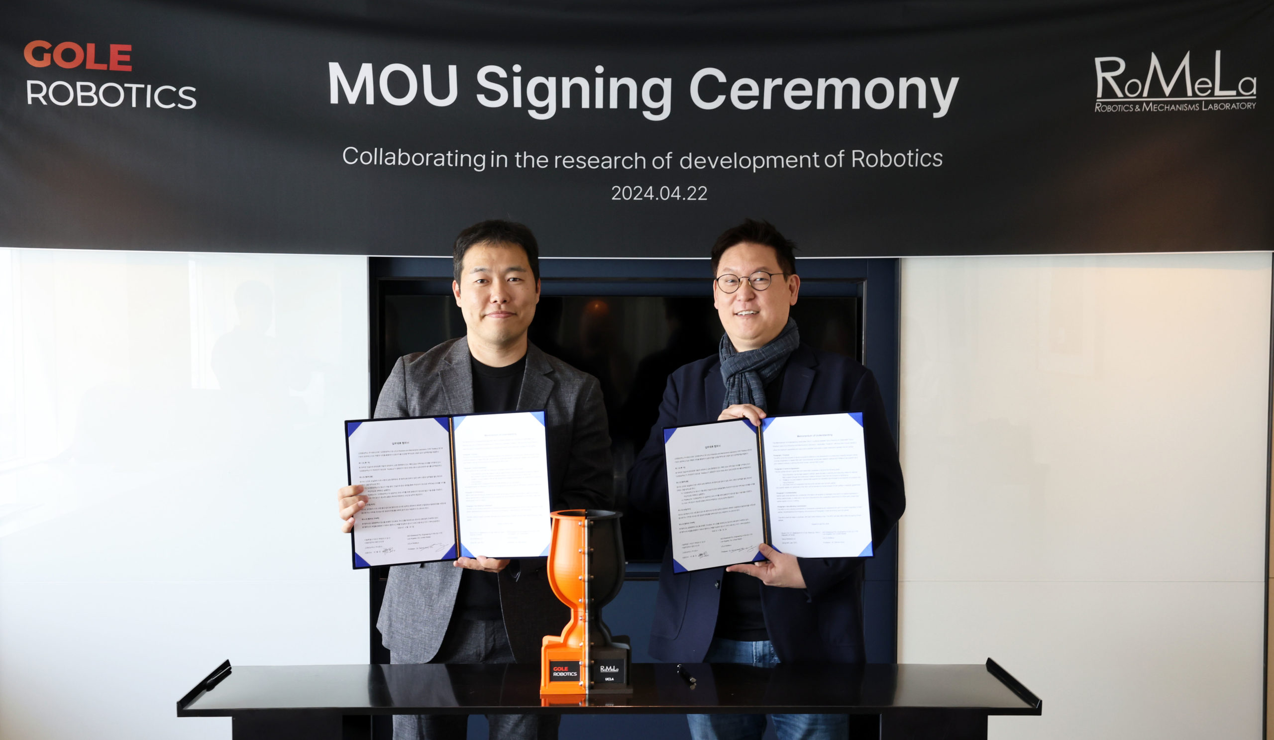 ‘자율주행로봇을 활용한 건설현장 건설자재 새벽배송 서비스’를 개발하고있는 고레로보틱스가 지난 22일 서울 강남구 그랜드인터컨티넨탈 서울파르나스에서 UCLA RoMeLa의 로봇 석학 데니스홍(Dennis Hong) 교수와 건설로봇 분야 업무협약을 위해 MOU를 체결했다고 23일 밝혔다.
