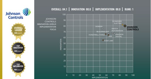 ABI 리서치는 상업용 빌딩 버티컬, 애플리케이션과 포트폴리오에 걸친 광범위한 영역에서 디지털화, 데이터 수집, 관리, 모니터링 및 성능 개선 기능을 지닌 9개의 주요 상업용 빌딩 플랫폼의 경쟁력을 비교했다. ABI 리서치의 연구원들은 고성능 OpenBlue 플랫폼과 관련 서비스를 통해 기존 고객과 신규 고객 모두를 지원하려는 존슨콘트롤즈의 노력을 인정해 함께 선정된 9개 공급업체 중 가장 높은 점수를 부여했다. 특히 존슨콘트롤즈는 ▲스마트빌딩 관리에 대한 오랜 헌신 ▲종합적인 OpenBlue 서비스 제공을 통한 스마트빌딩 관리에 대한 인식 확산과 도입 견인 ▲고성능 플랫폼과 연계 서비스를 통한 고객 지원 노력 등에서 높이 평가됐다.